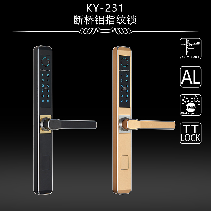 英唯利KY-231断桥铝指纹锁铝合金CNC通通锁APP